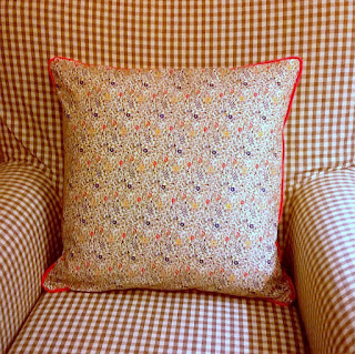 The pretty little floral fabric is a Liberty lawn. It is left over from the sashes of the bridesmaids dresses of the person for whom I was making the items. She wanted it to be incorporated into the bunting and cushion with yellows and pinks.