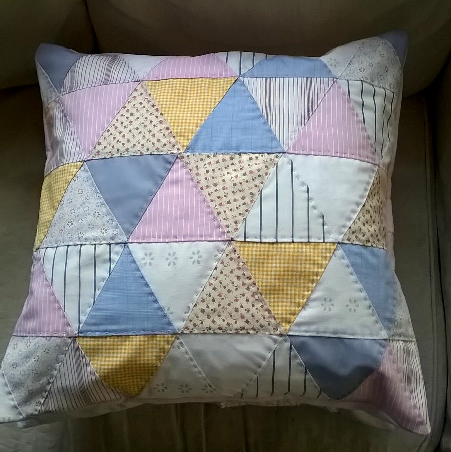 Last year I pieced together this triangles cushion front and hand quilted it, but then never found time to make it into a cushion.